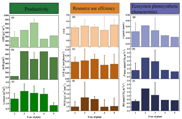 值得关注的是,该5年种植模式通过优化资源配置,使人工草地的水分利用效率、光能利用效率始终维持在较高水平,碳利用效率保持稳定,有效破解了高原地区水资源匮乏、生态环境脆弱等资源约束的核心难题,为在生态保护与经济发展之间寻求平衡提供了可行路径。